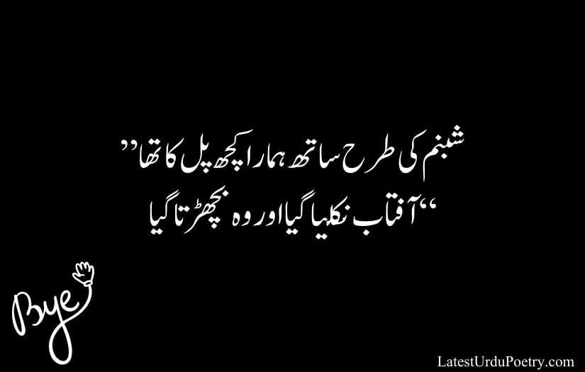 Shabnam ki tarah saath hamaara kuch pal ka tha.”“Aftab nikalta gaya aur woh bichhadta gaya,