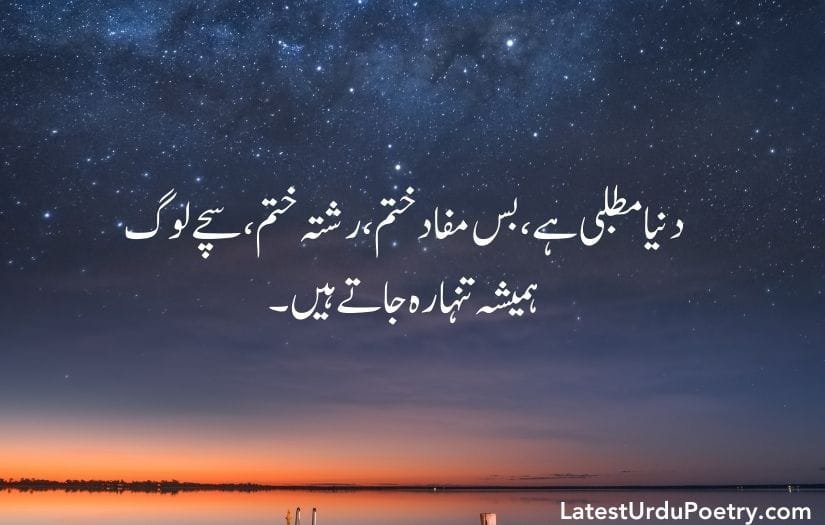 دنیا مطلبی ہے، بس مفاد ختم، رشتہ ختم۔